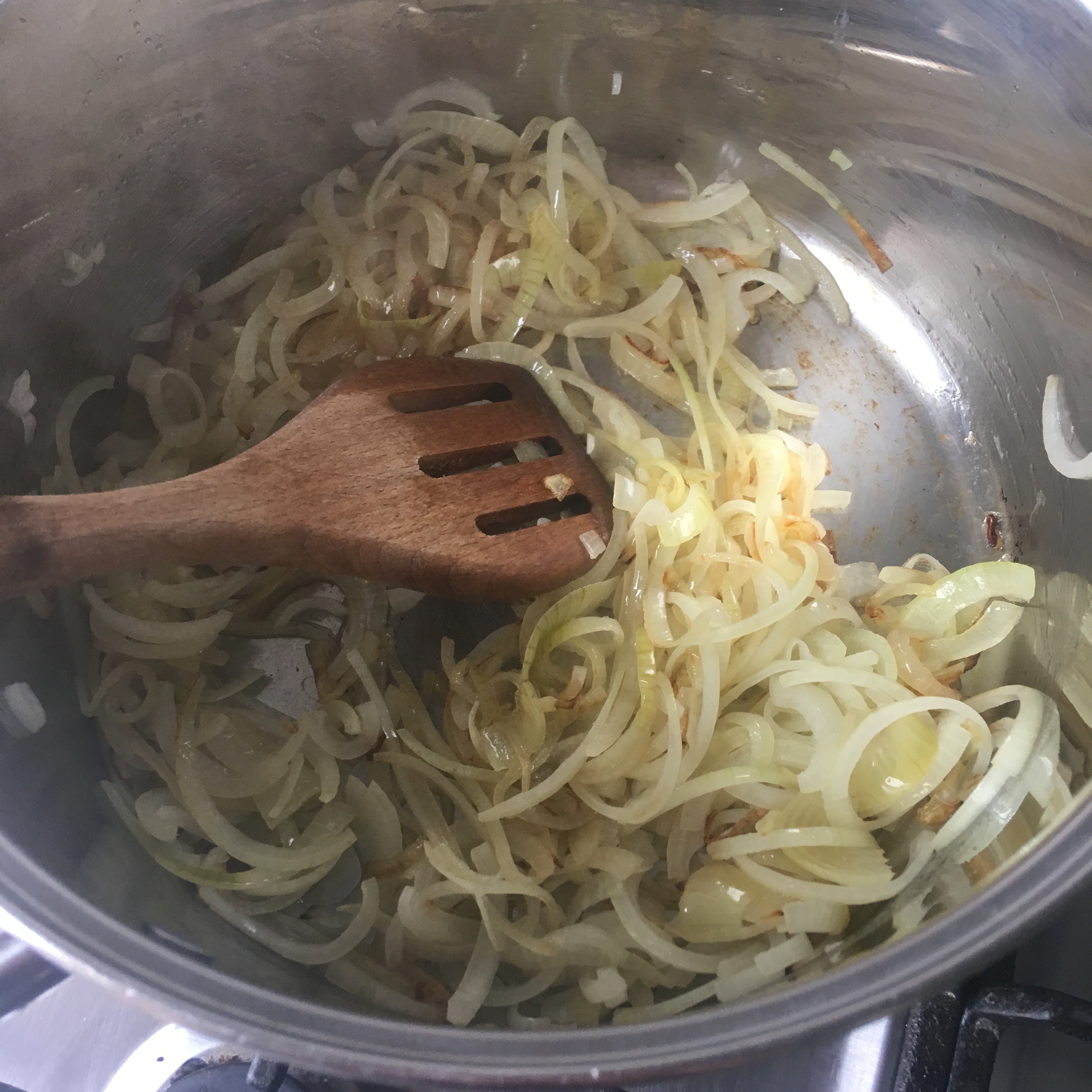 1. Finely slice onions and cook in oil slowly over a low heat until they break down and caremalise